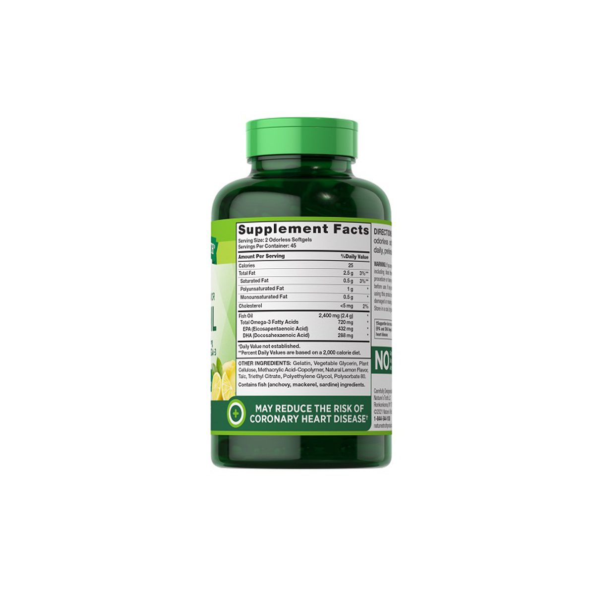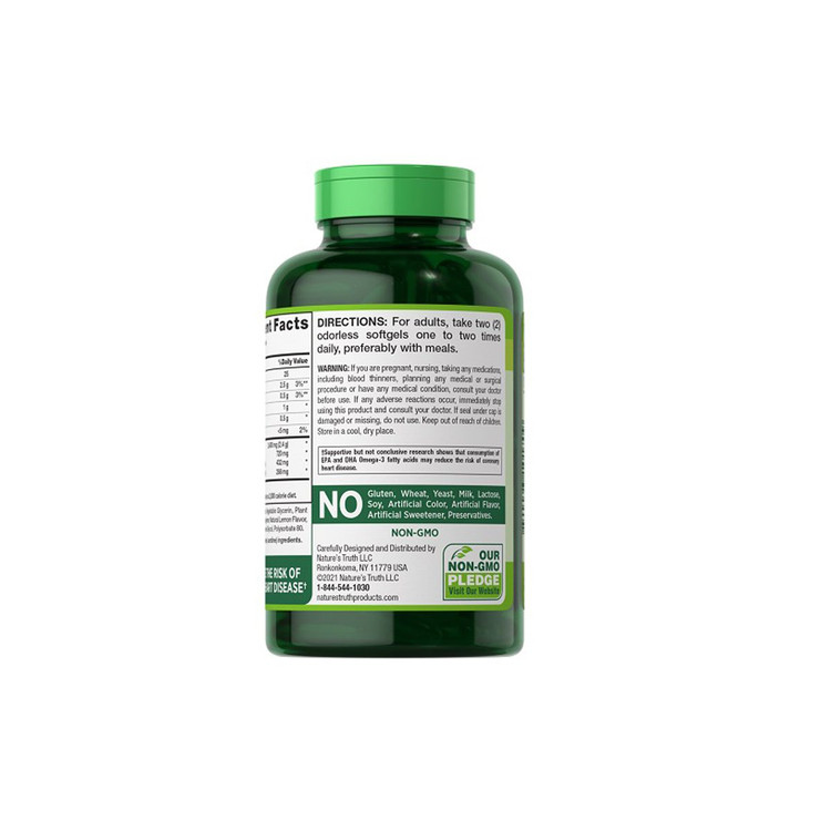 روغن ماهی نیچرز تریث Nature’s Truth Fish Oil به گونه ای فرموله شده است که حاوی 360 میلی گرم اسیدهای چرب امگا 3 (EPA و DHA) در هر کپسول باشد که ممکن است به کاهش خطر بیماری قلبی عروقی کمک کند. این مکمل برای از بین بردن جیوه و سایر فلزات سنگین خالص شده است و کپسول های سافت ژل بدون بو را در اختیار شما قرار می دهد تا آروغ ماهی را به حداقل برساند و به یک مکمل ساده برای استفاده در روتین سلامت شما تبدیل شود.