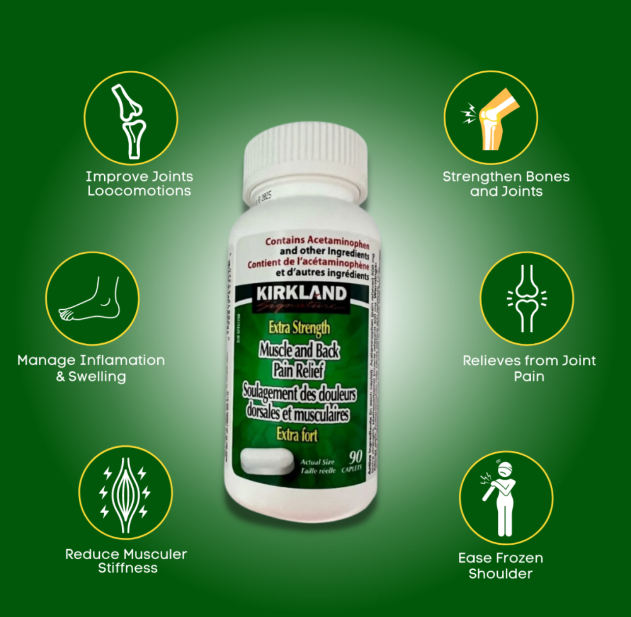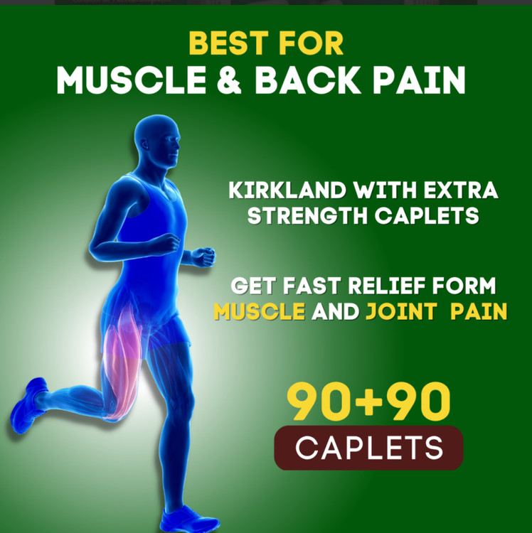 تسکین دهنده کمردرد و دردهای عضلانی Extra Strength Muscle Back Pain Relief کرکلند (180 عددی) محصول آمریکا - کانادا -تسکین سریع و طولانی مدت درد تسکین مفاصل متورم و دردناک رفع التهاب و سفتی مفاصل بهبود انعطاف پذیری و تحرک مفاصل