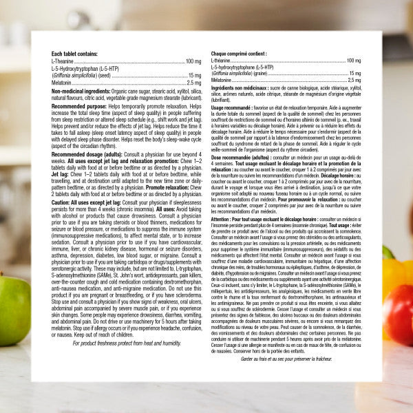 دوز توصیه شده (بزرگسالان): برای استفاده بیش از 4 هفته با پزشک مشورت کنید. همه موارد به جز جت لگ و تقویت آرامش: روزانه 1 تا 2 قرص را همراه با غذا قبل از خواب یا طبق دستور پزشک بجوید. جت لگ: روزانه 1 تا 2 قرص را همراه با غذا در هنگام یا قبل از خواب، در حین سفر و در مقصد بجوید تا زمانی که با منطقه زمانی جدید یا زمان خواب الگوی روزانه یا طبق دستور پزشک تطبیق داده شود. تقویت آرامش: روزانه 2 قرص را همراه با غذا قبل از خواب یا طبق دستور پزشک بجوید.