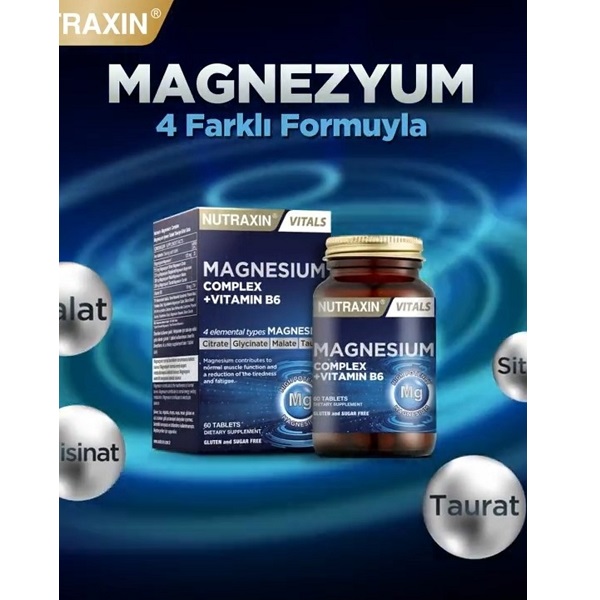 کمپلکس منیزیم و ویتامین ب 6 نوتراکسین Nutraxin Magnesium Complex + Vitamine B6 حاوی 125 میلی گرم منیزیم و 10 میلی گرم ویتامین B6است که به عملکرد طبیعی ماهیچه ها و سیستم عصبی، عملکرد ذهنی کمک می کند، سطح انرژی را پشتیبانی می کند و به تناسب اندام کمک می کند.