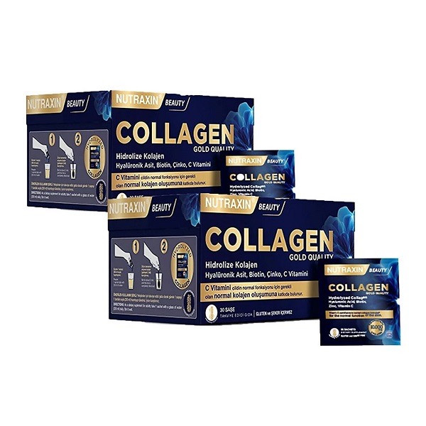 کوالیتی گلد کلاژن نوتراکسین 30 ساشه Nutraxin Collagen 10000 mg به سلامت پوست، مو و ناخن های شما کمک می کند و از ایجاد چین و چروک پوست جلوگیری می کند. کلاژن که به دلیل توانایی در پیشگیری و ترمیم علائم پیری پوست شناخته شده است، به عنوان عنصر اصلی در بسیاری از محصولات زیبایی ضد پیری شناخته می شود. بدن ما به طور طبیعی این پروتئین را تولید می کند و پیروی از یک رژیم غذایی سرشار از مواد مغذی می تواند به اطمینان از سالم بودن ذخایر کلاژن ما کمک کند.