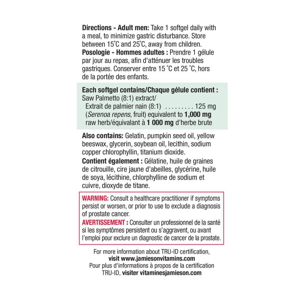 ساخت کانادا – با افزایش سن مردان تغییرات در سطح تستوسترون می تواند منجر به بزرگ شدن پروستات شود و باعث انواع علائم ادراری شود.ساوپالمتو دارای سابقه طولانی در استفاده در داروهای گیاهی برای کاهش علائم پروستات بزرگ شده یا هیپرپلازی خوش خیم پروستات(BPH) هستند
