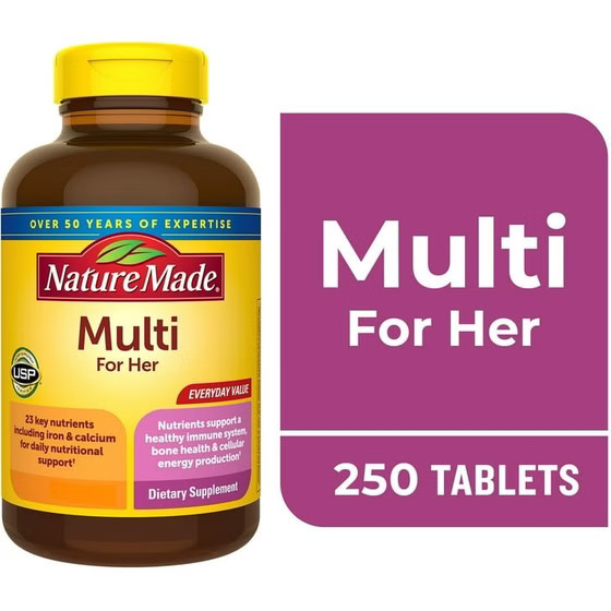 روز خود را با مولتی ویتامین زنانه نیچرمید که مخصوص خانم ها شروع کنید. هر قرص مکمل نیچر مید 22 ماده مغذی کلیدی را برای حمایت تغذیه ای روزانه و برای تأمین نیازهای در حال حاضر بانوان است