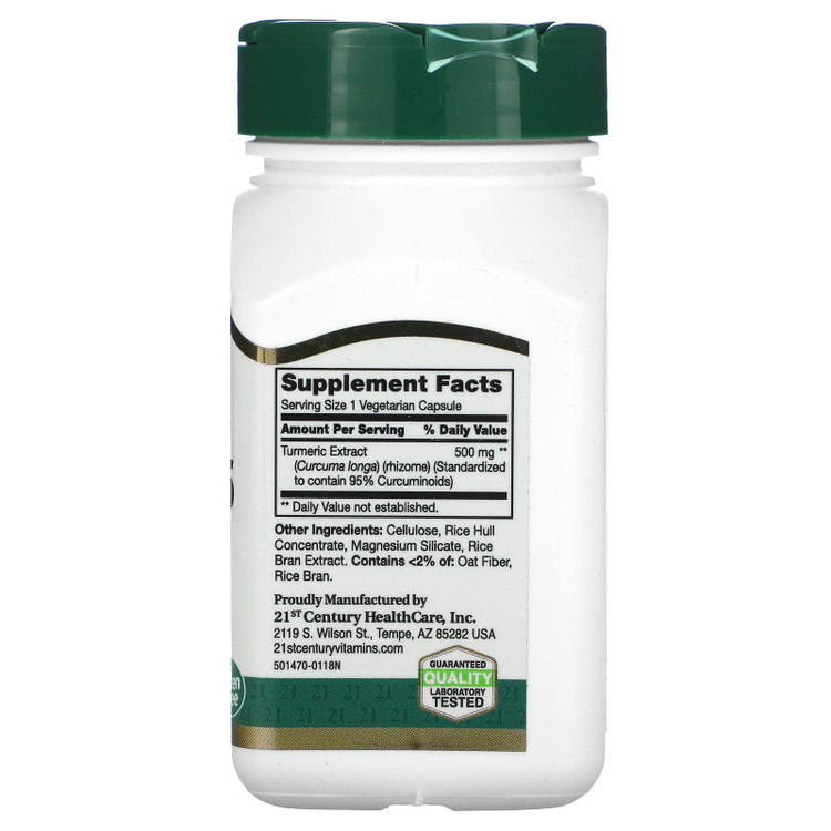 مکمل Curcumin 95% Extract از برند معتبر آمریکایی 21st Century حاوی عصارهی طبیعی زردچوبه با غلظت بالا (۹۵٪ کورکومینوئیدها) است.