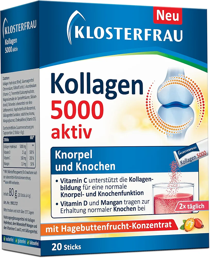 پودر Kollagen 5000 برند Klosterfrau یک مکمل پیشرفته برای حمایت از مفاصل، استخوانها و غضروفها است. این مکمل حاوی 5000 میلیگرم کلاژن با کیفیت بالا به همراه ویتامین C، D و منگنز بوده و به گونهای طراحی شده که به حفظ سلامت ساختار اسکلتی و حرکت طبیعی مفاصل کمک کند. فرم استیکی این محصول مصرف آن را آسان و سریع کرده است.