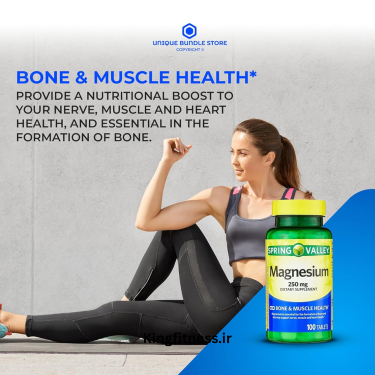 افزایش سلامت عضلات و استخوان با منیزیم 250 میلی گرم - قرص اسپرینگ ولی منیزیم 250 میلی گرم، 100 شمارش
