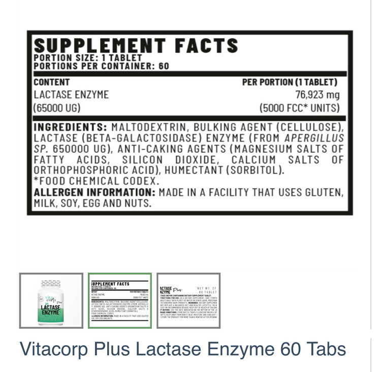 Vitacorp Plus Lactase Anzyme 60 Tabs