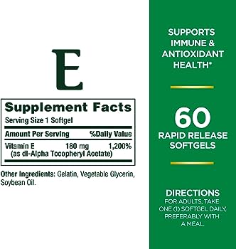 ویتامین E یک ماده مغذی ضروری برای سلامتی است که از عملکرد سیستم ایمنی نیز حمایت می کند. ویتامین E حاوی خواص آنتی اکسیدانی است که به مبارزه با رادیکال های آزاد در بدن کمک می کند. سلول ها.* ویتامین E ما با در نظر گرفتن خلوص ساخته شده است - بنابراین از مکمل های با کیفیت مطمئن هستید.