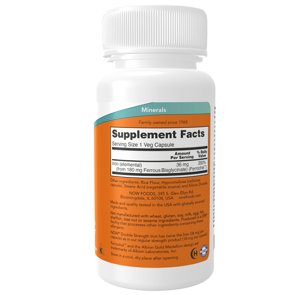 Double Strength Iron 36 mg Essential Mineral chel Iron Bisglycinate So Non-Constipating* 90 Veg Capsules