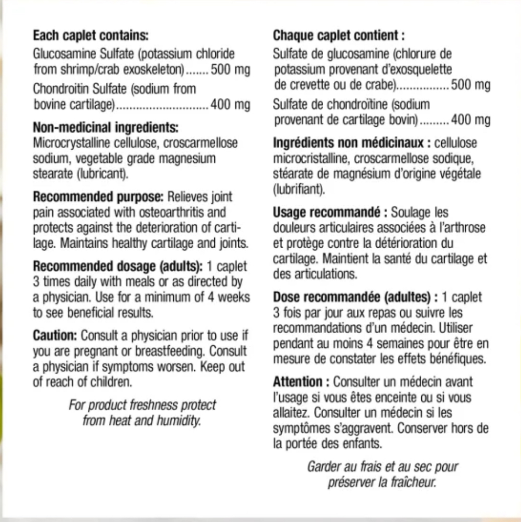 گلوکزامین مکمل ممکن است منجر به کاهش درد، سفتی، حساسیت و تورم مفاصل و همچنین افزایش عملکرد مفاصل شود. کندرویتین با جذب آب به داخل غضروف، غضروف شما را سالم نگه میدارد و مواد مغذی و روانکاری آن را تامین میکند. همچنین آنزیم های تخریب کننده بیش از حد غضروف را مهار می کند.