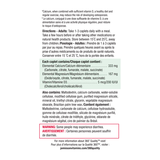 این مکمل جمیسون با ویتامین D3 غنی سازی شده است، این فرمول بسیار قابل جذب کلسیم و منیزیم را با نسبت بهینه 2:1 ترکیب می کند تا از استخوان های قوی و عملکرد ماهیچه های سالم حمایت کند و به کاهش خطر ابتلا به پوکی استخوان کمک کند.