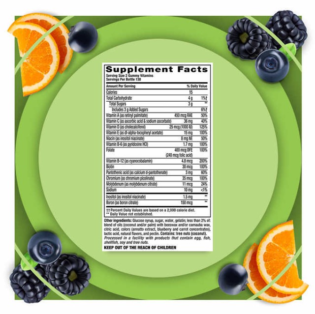 این پاستیل های لذتبخش که از ترکیبی قدرتمند از ویتامینها، مواد معدنی و طعمهای میوه ساخته شدهاند، مملو از 12 ماده مغذی ضروری از جمله ویتامینهای A، B، C، D، E، B6، B12، بیوتین و غیره هستند.