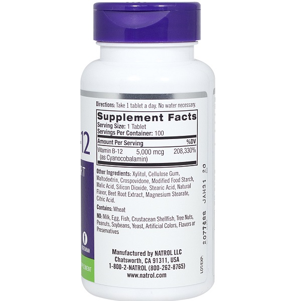 روزی 1 قرص ویتامین ب۱۲ ناترول که نیازی به آب ندارد و به راحتی در دهان حل میشود.