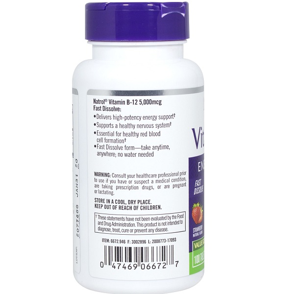 جذب سریع: فرمول انحلال سریع ویتامین B12 ناترول باعث میشود که ویتامین به سرعت در دهان حل شده و به سرعت جذب شود. این ویژگی به افرادی که مشکل در بلع قرصهای بزرگ دارند یا نیاز به جذب سریعتری از ویتامین دارند، کمک میکند.