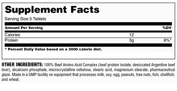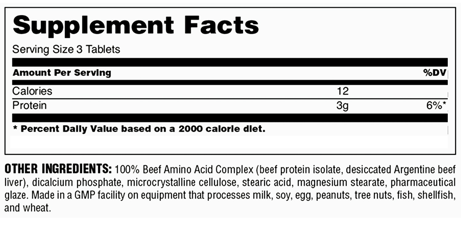 آمینو بیف یونیورسالuniversal Beef Aminos یک مکمل غذایی طبیعی با قدرت بالا و مشتق شده از با کیفیت ترین پروتئین ایزوله گوشت گاو و جگر گاو خشک شده خالص آرژانتینی است. این محصول مغذی حاوی طیف کاملی از اسید آمینه های مهم EAAوBCAAاست. فرمول این مکمل از پتانسیل واقعی آنابولین گوشت گاو استفاده می کند و برای هر کسی که به دنبال اضافه کرده عضلات بدون چربی است ایده آل است. آمینو بیف یونیورسال 100 درصد خالص ، یک محصول طبیعی و ساخت کشور آمریکا است که از پروتئین ایزولهی بیف با بالاترین کیفیت گرفته شده است. کمتر منبع پروتئینی است که قادر باشد مانند گوشت گاو، آمینواسید و پروتئین های موردنیاز را تامین کند و فرآیند عضله سازی را تسریع کند.