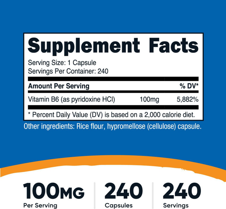 ویتامین ب 6 پیریدوکسین هیدروکلراید 100 میلی گرم Nutricost Vitamin B6 (Pyridoxine HCl) 100mg, 240 Capsule