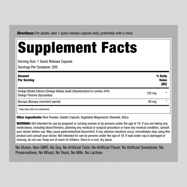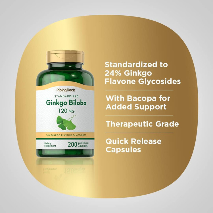 جینکو بیلوبا میلی گرم پایپینگ راک Piping Rock Ginkgo Biloba Supplements 120mg | 200 Capsules