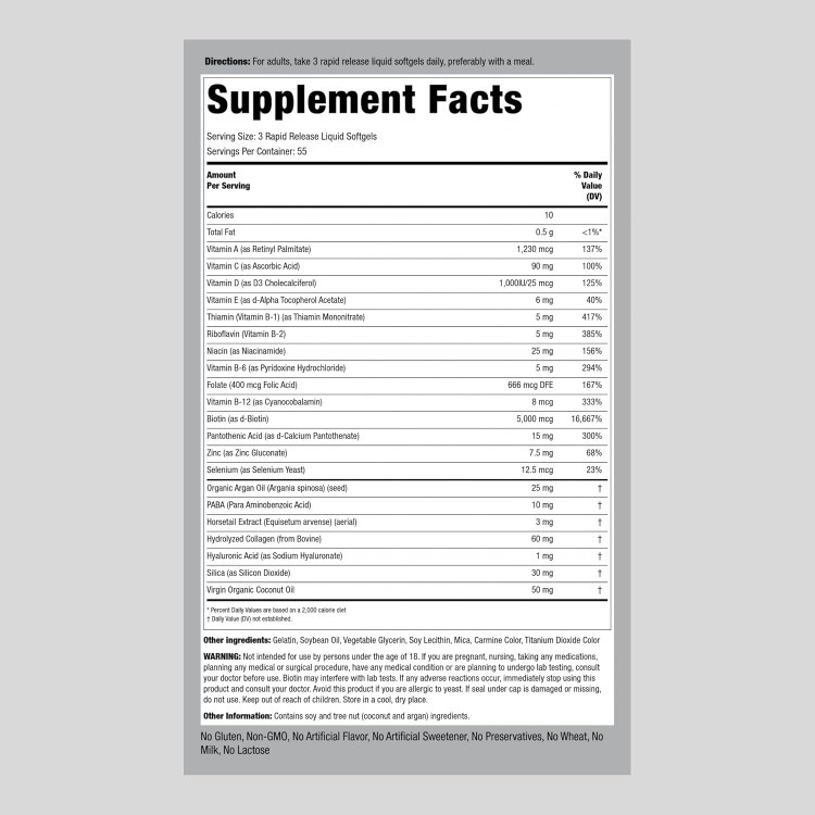 Piping Rock Hair Skin and Nails Vitamins | 165 Softgels