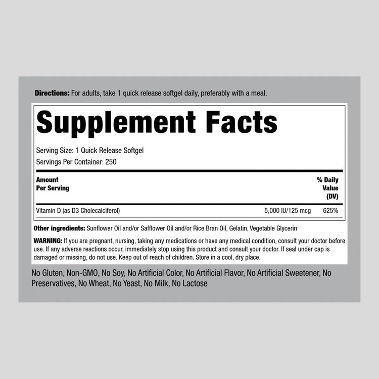 ### طریقه مصرف:مقدار مصرف توصیه شده معمولاً یک کپسول (5000 واحد بینالمللی) در روز است، اما بهتر است طبق دستورالعمل پزشک یا مشاور تغذیه مصرف شود. مصرف بیش از حد ویتامین D3 ممکن است عوارض جانبی داشته باشد.
